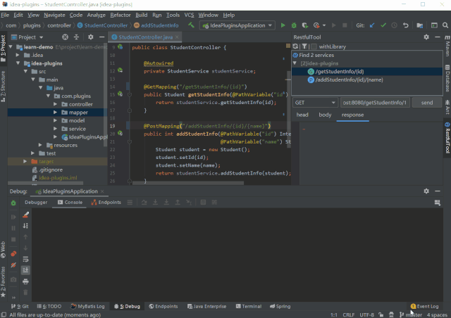 TIP: RestfulToolkit 插件与 RestfulTool 插件功能类似,只是 RestfulToolkit 在 IDEA 2020.1 以后作者未更新,不能使用了,但是在 IDEA 2019.3.5可以使用,在 IDEA 2020.1 版本以后可以装 RestfulTool 插件,且该插件只支持 IDEA 2020.1+ 。