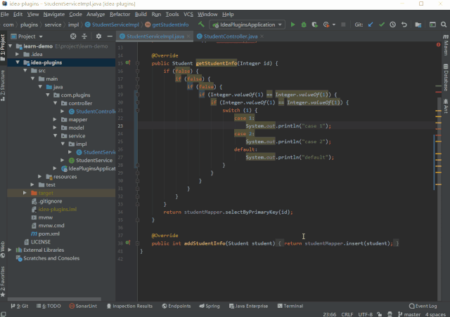 使用 AlibabaJavaCodingGuidelines 插件来规范代码,使用 SonarLint 来提前发现代码问题,配合起来提高工程整体的代码质量,并且能够在编码阶段规避风险,提高程序的健壮性。