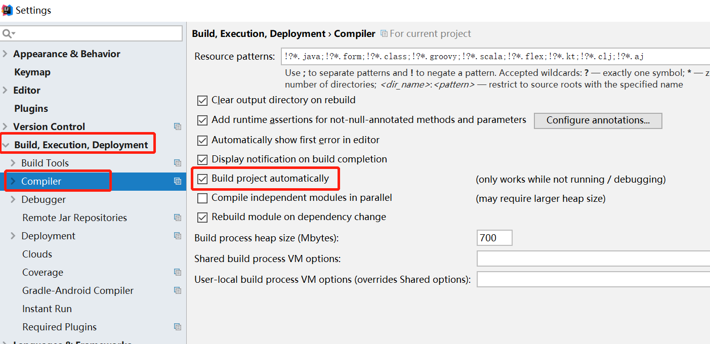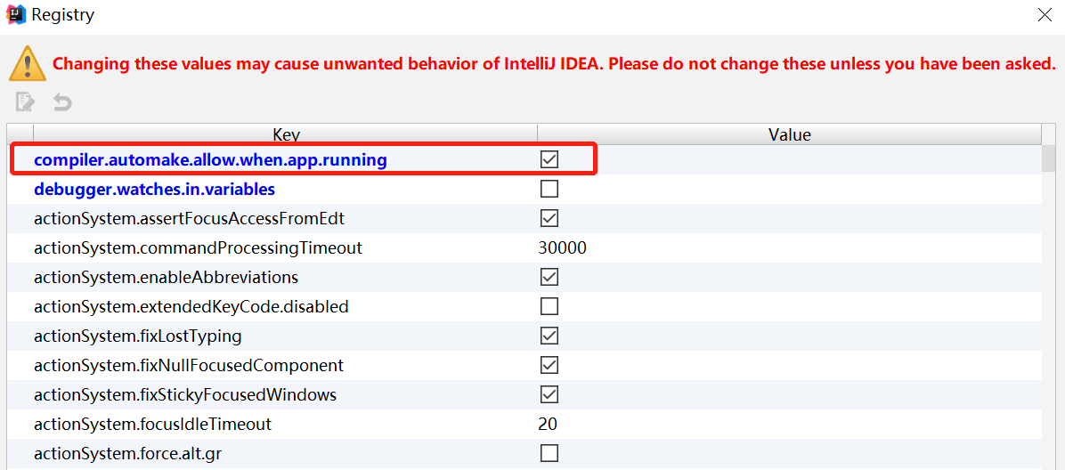 勾选运行时自动编译(compiler.automak.allow.when.app.running)