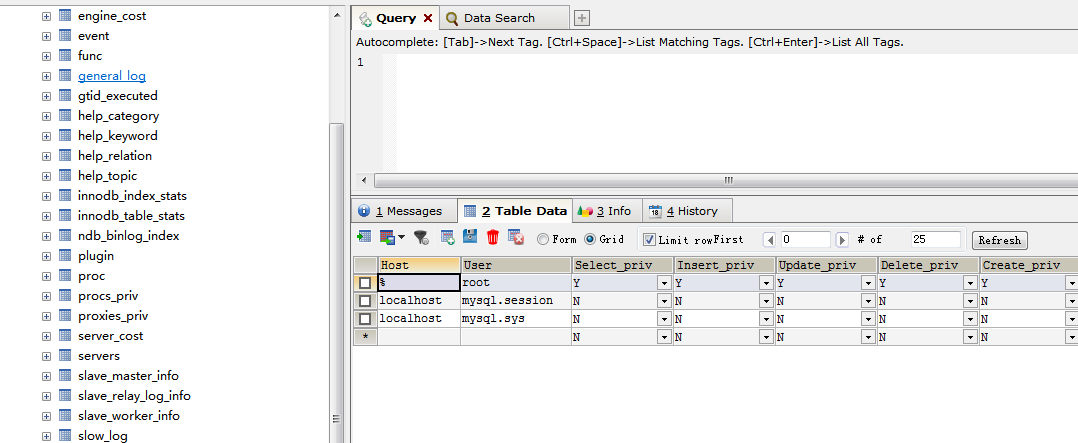 mysql> use mysql;