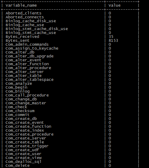 mysqladmin extended-status命令及show global status得到的指标项特别多。实际应用中,重点关注以下性能指标:
