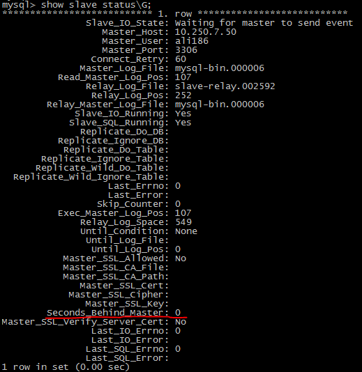 可以在slave节点上执行show slave status\G命令,Seconds_Behind_Master项的值即为slave当前的延时量,单位秒。