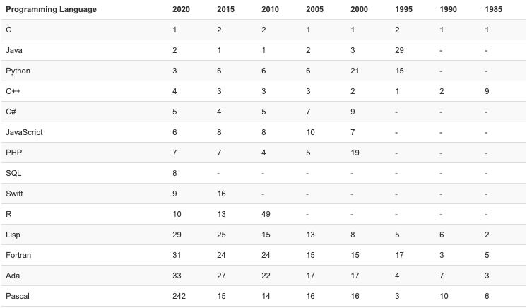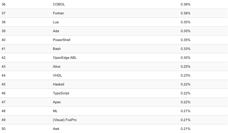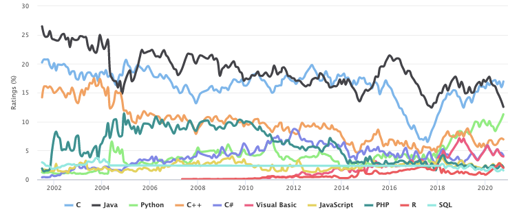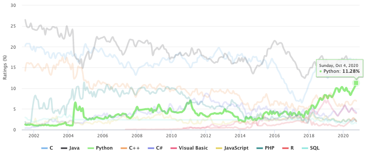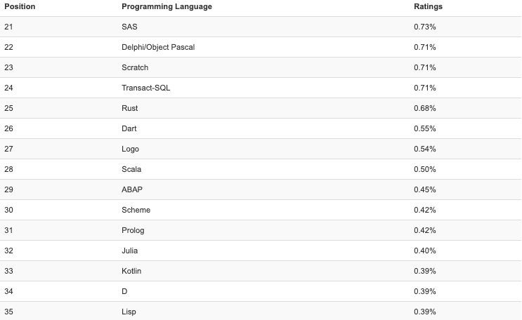 所以,如果 Python 达到第2位,这将是一个历史性事件。让我们看看接下来几个月会发生什么。