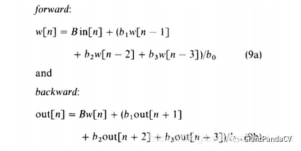 这个递推公式的意义就是通过forward和backward来完成一维的高斯滤波。而二维的高斯滤波就是先行后列或者先列后行进行一维的高斯滤波。