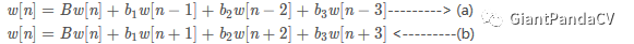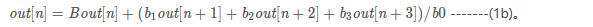 从速度上看,最好是能够去掉1a和1b的除法,所以这里重新定义b1 = b1 / b0, b2 = b2 / b0, b3 = b3 / b0, 最终得到我们使用的递归公式: