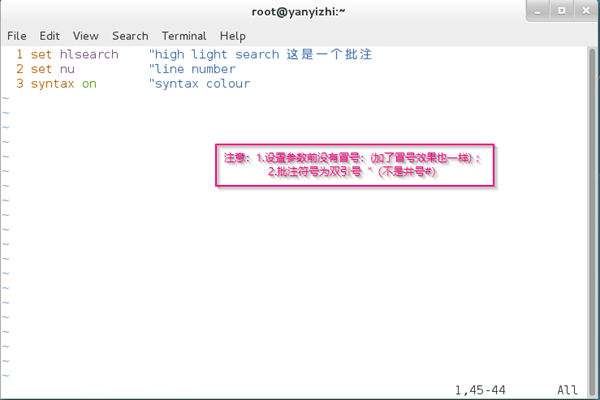 修改vim的操作环境 :修改~/.vimrc(默认不存在,须手动创建)文件,将设置值写入