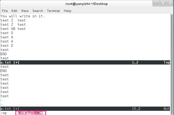 (水平)分割窗口打开2.txt新文件(若不加文件名,表示两个窗口均为当前文件的内容)(split拆分) |