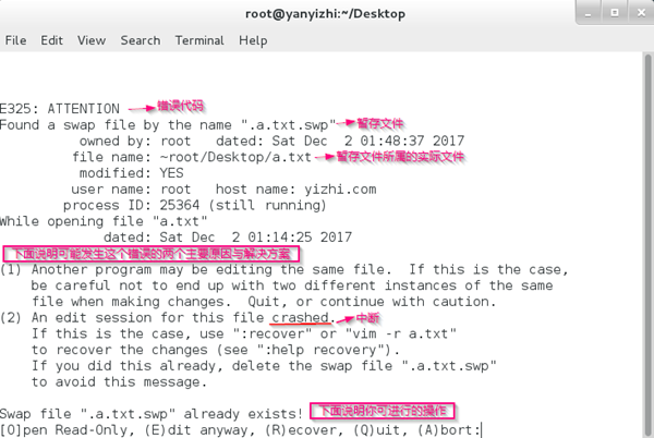 Edit anyway:以正常的方式编辑此文件,不载入暂存文件的内容(容易出现两个用户互相改变对方的文件内容等问题)
