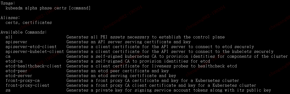 在此,我们使用kubeadm alpha phase certs系统命令,重新生成证书。