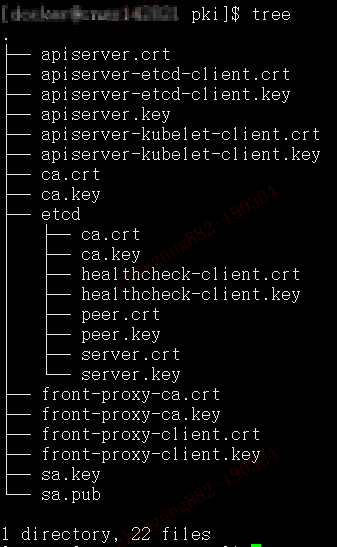 使用kubeadm创建完Kubernetes集群后, 默认会在/etc/kubernetes/pki目录下存放集群中需要用到的证书文件, 整体结构如下图所示: