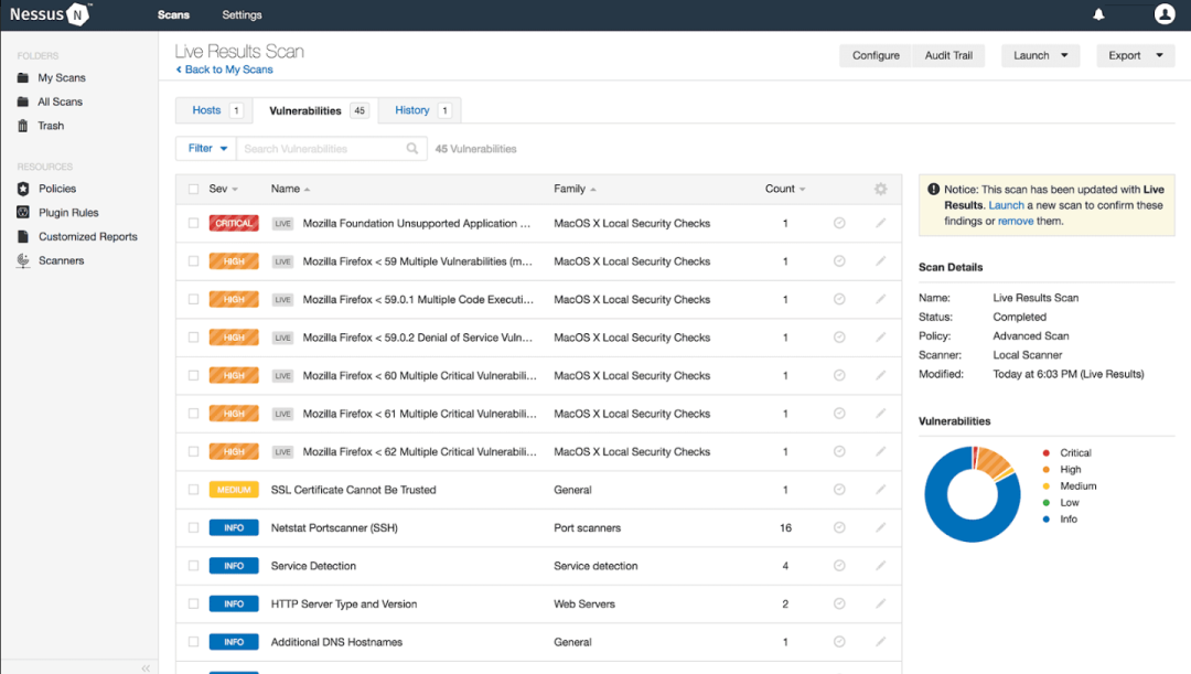 Tenable的Nessus Professional是一款面向安全专业人士的工具,负责解决补丁,软件问题,恶意软件和广告软件删除工具以及各种操作系统和应用程序上的错误配置。