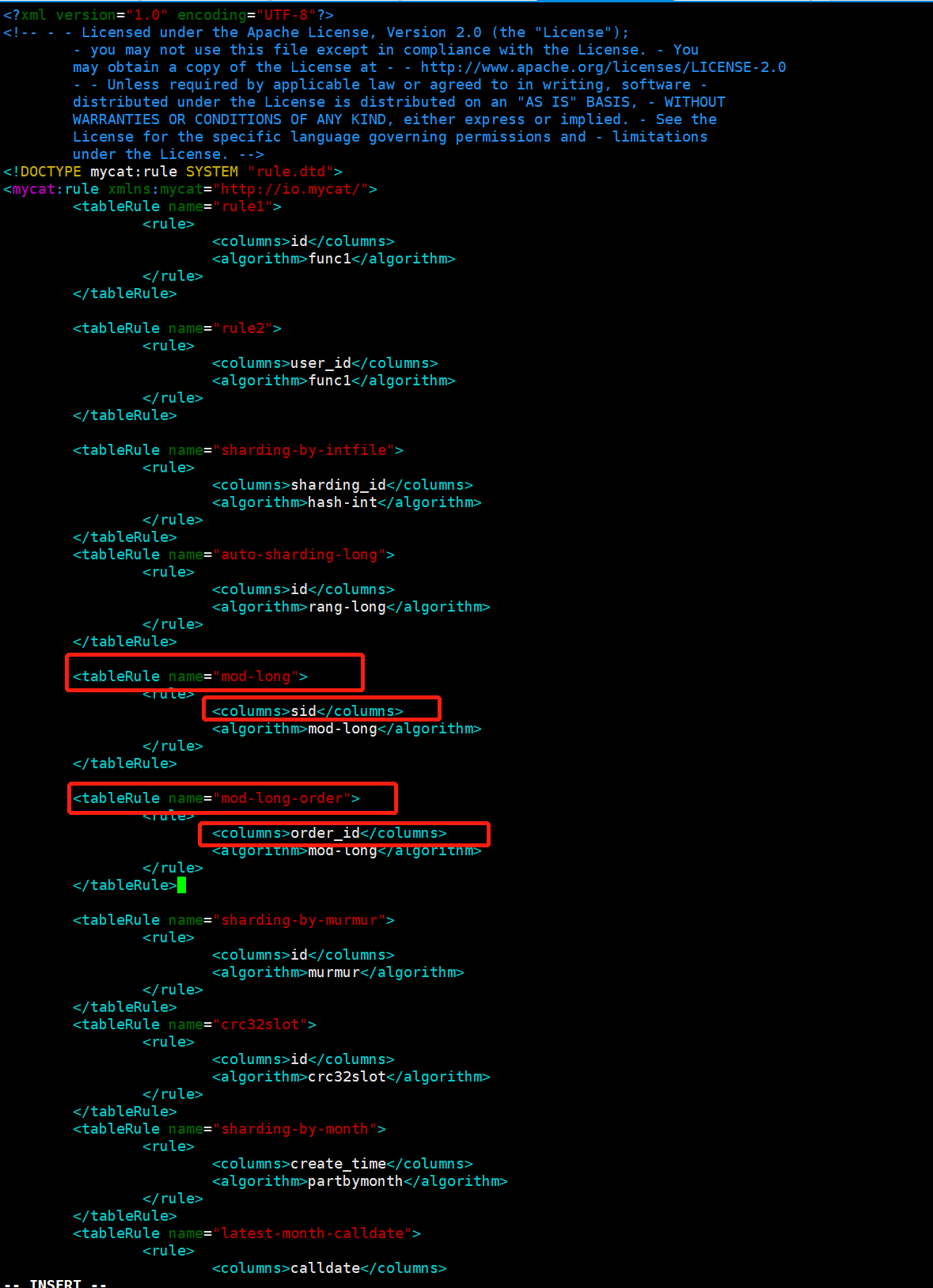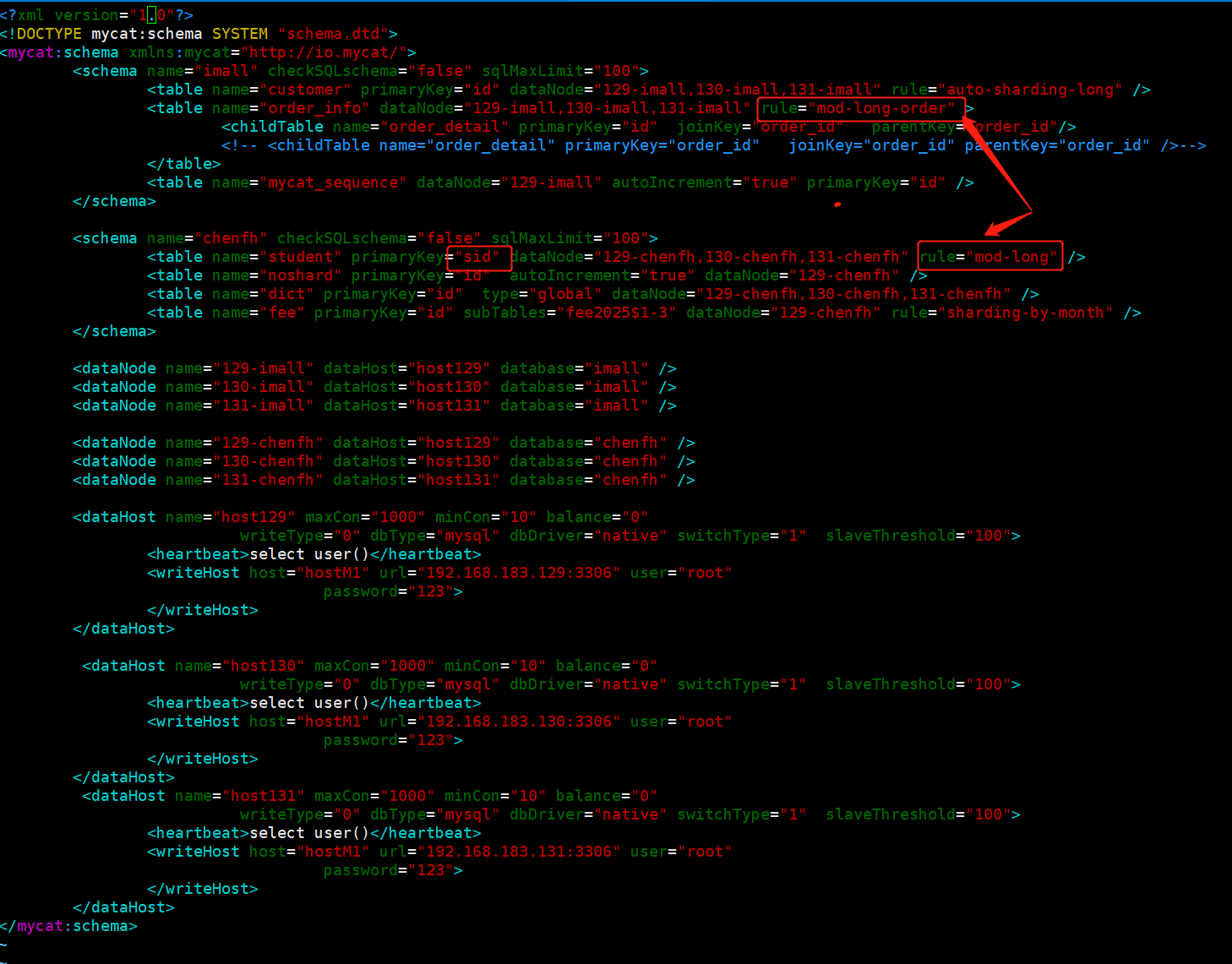上图中用到的路由规则,如果对应表的主键不是id,或者不存在该路由规则, 需要在rule.xml进行更改