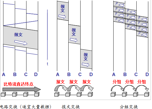 分组交换(存储转发技术):在发送端先将保温划分为较短的,固定长度的数据段
