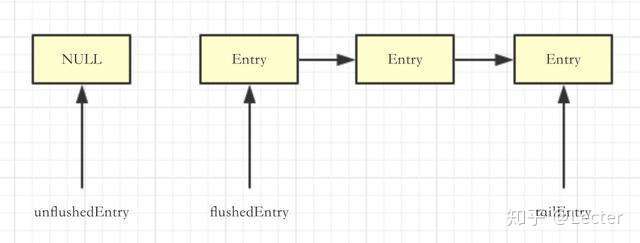 然后是循环所有的flushedEntry,这里,我们回顾一下上面addFlush之后的图,其实循环中会不停地把flushedEntry前移,直到flushedEntry和tailEntry中的节点全部都被处理。isFlushEntry的代码:e != null && e != unflushedEntry;,其实就是,不是unflushedEntry的都是flushedEntry。