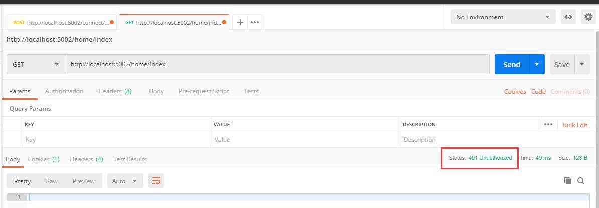 若不加token访问是被拦截的,返回401: