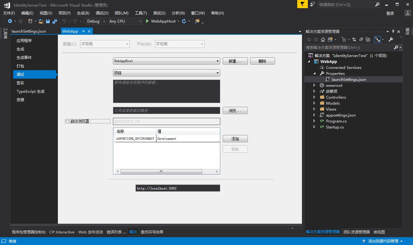 5,创建一个新的启动项,名称定为:WebAPPHost,把端口指定到5002(或者其他不与本地冲突的端口)