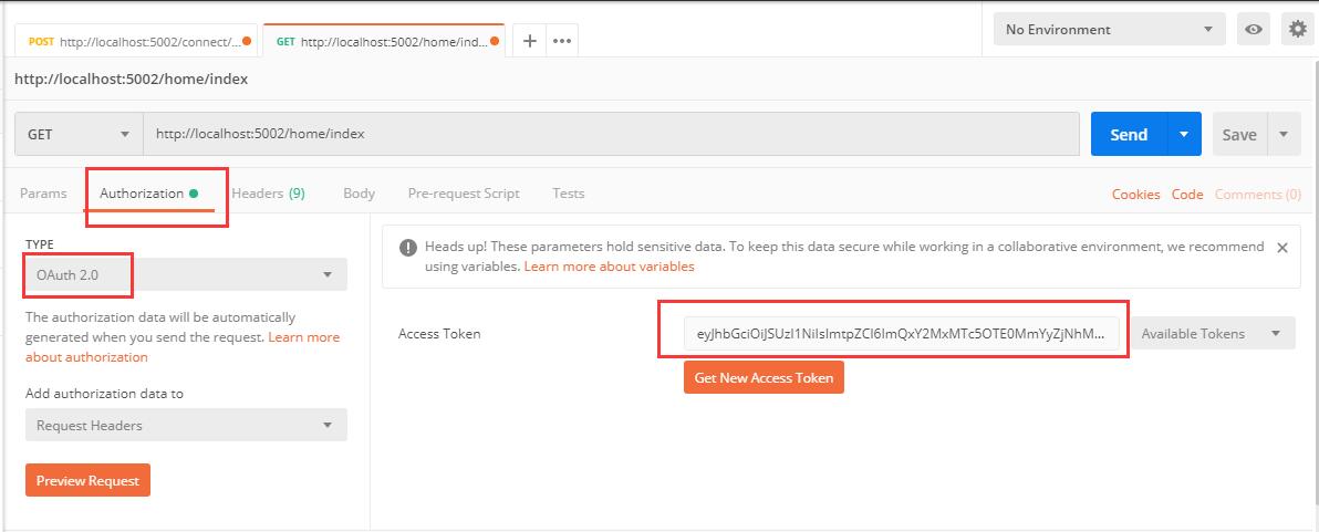 然后,我们用获取到的token访问home/index接口