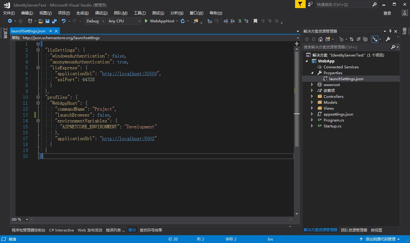 6,生成的launchSettings.json如下