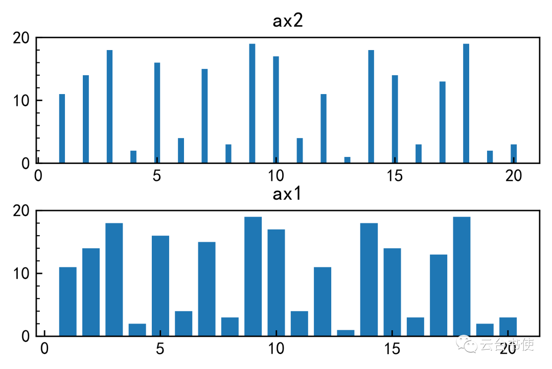 ax1.bar(x,y,width=0.75)ax2.bar(x,y,width=0.25)