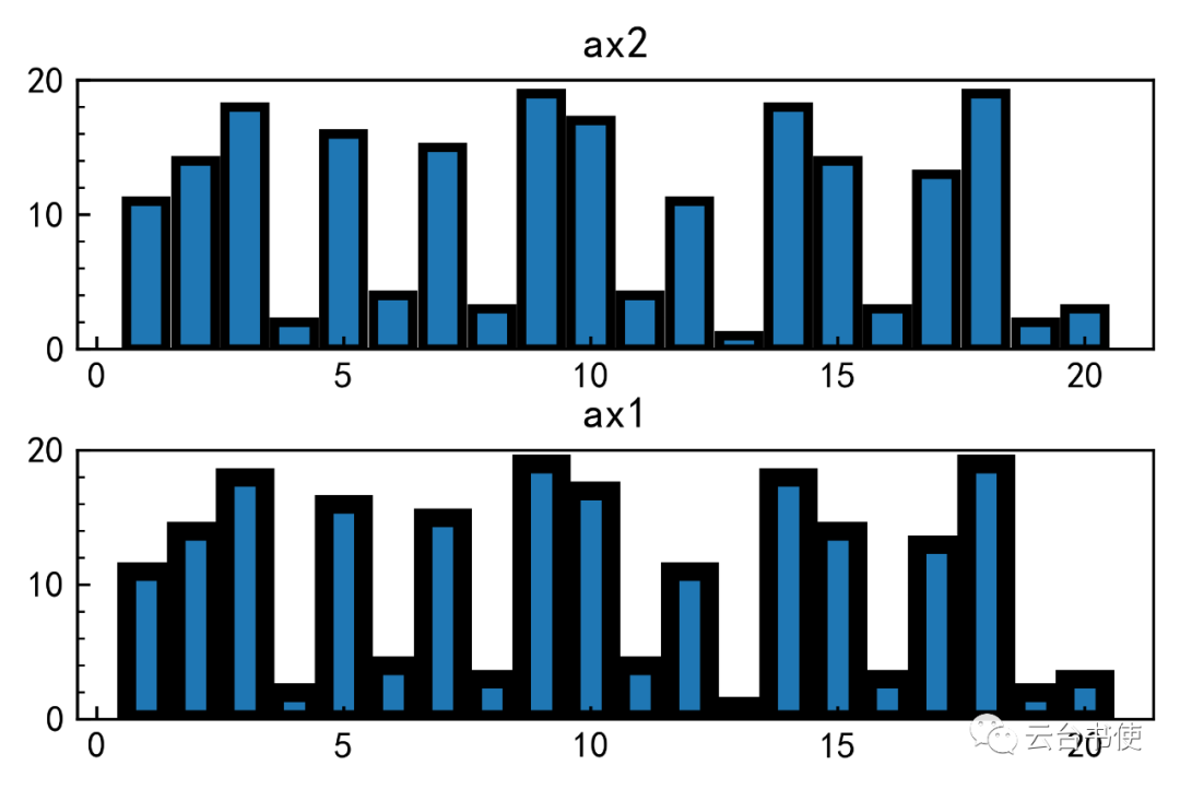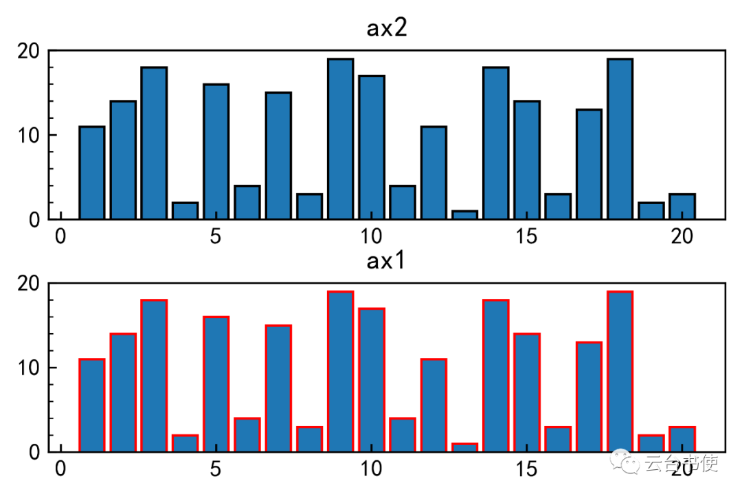 ax1.bar(x,y,edgecolor='r')ax2.bar(x,y,edgecolor='k')