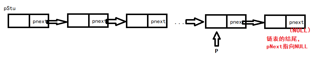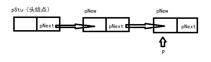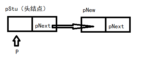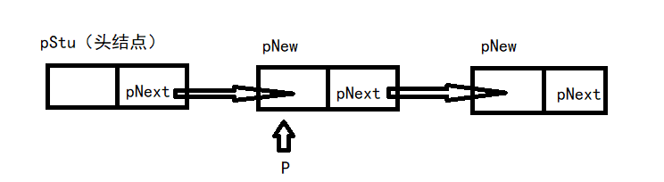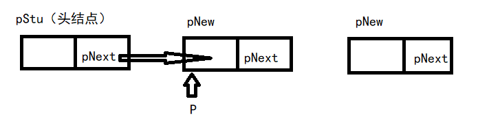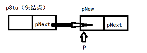 创建临时变量pNew,赋值后,此时令pNew=P->pNext,完成结点之间的连接