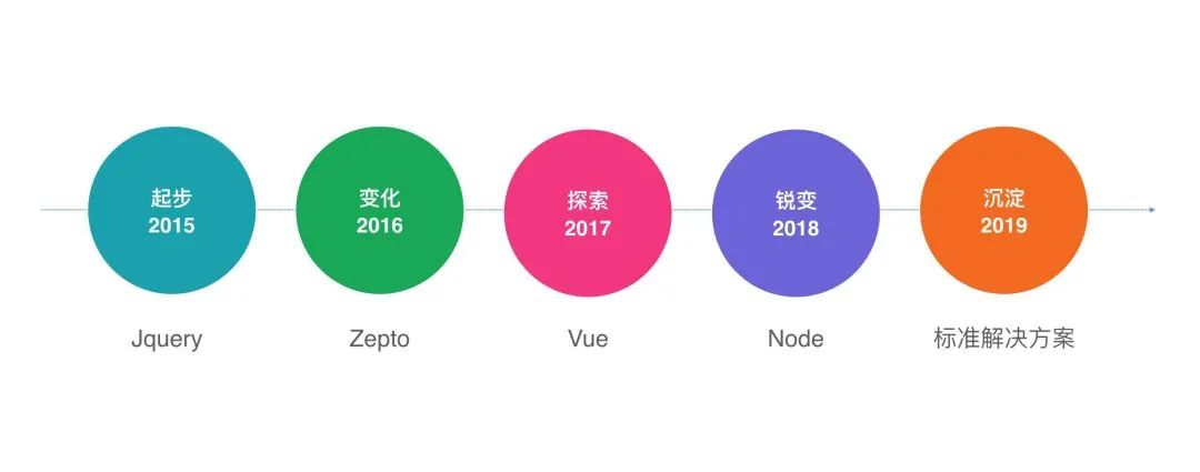 微医是总部位于杭州萧山的一家互联网医疗公司,我们的前端研发人员从2015年的几个人发展到现在的120多人,前端技术栈体系发生了巨大的变化,下面这张图展示了我们部门前端团队的技术栈演进过程。