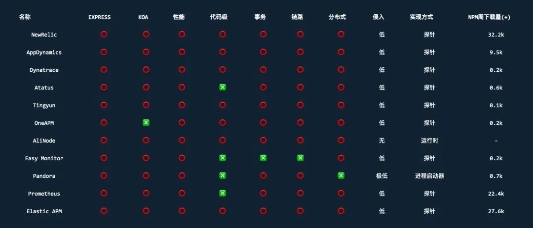 我们对比了常用的 APM 产品,从代码侵入、实现方式、成熟度、数据安全性以及性能等各个方面进行对比。