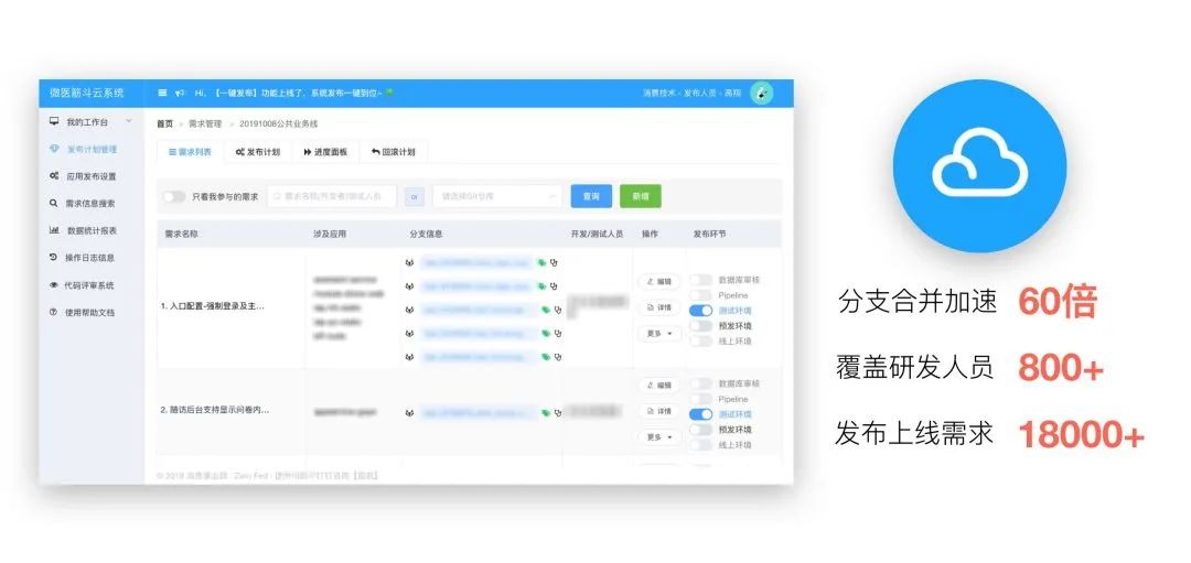 其中,筋斗云系统用于支撑需求的发布管理,是使用频率最高的内部平台之一。