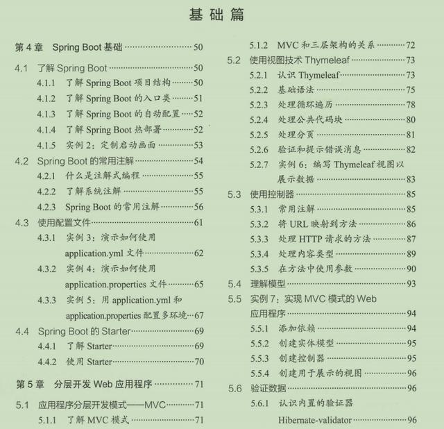 这份PDF系统介绍了Spring Boot2的主要技术,侧重于两个方面,一方面是极速开发一个Web应用系统,详细介绍Spring Boot框架、Spring MVC、视图技术、数据库访问技术,并且介绍多环境部署、自动装配、单元测试等高级特性。