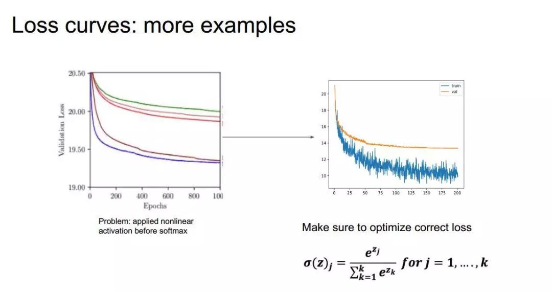 总结下,如果你认为你的神经网络设计没有明显错误的,但损失曲线显示仍然很奇怪,那么很有可能: