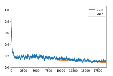 上图也是一个正确的损失曲线,虽然看到变化趋势并不是很明显,但仍然可以看出曲线在慢慢下降,这个过程其实是一个fune-turning的阶段。承接于尚一夫图的损失曲线,这幅图的损失值已经很小了,虽然毛刺很多,但是总体趋势是对的。