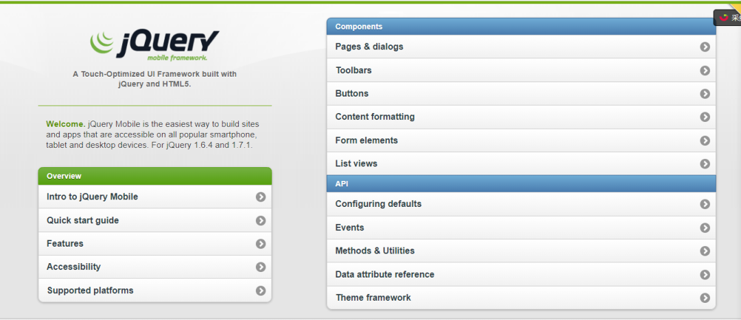 jQuery Mobile 还发布一个完整统一的jQuery移动 UI组件。支持全球主流的移动平台。