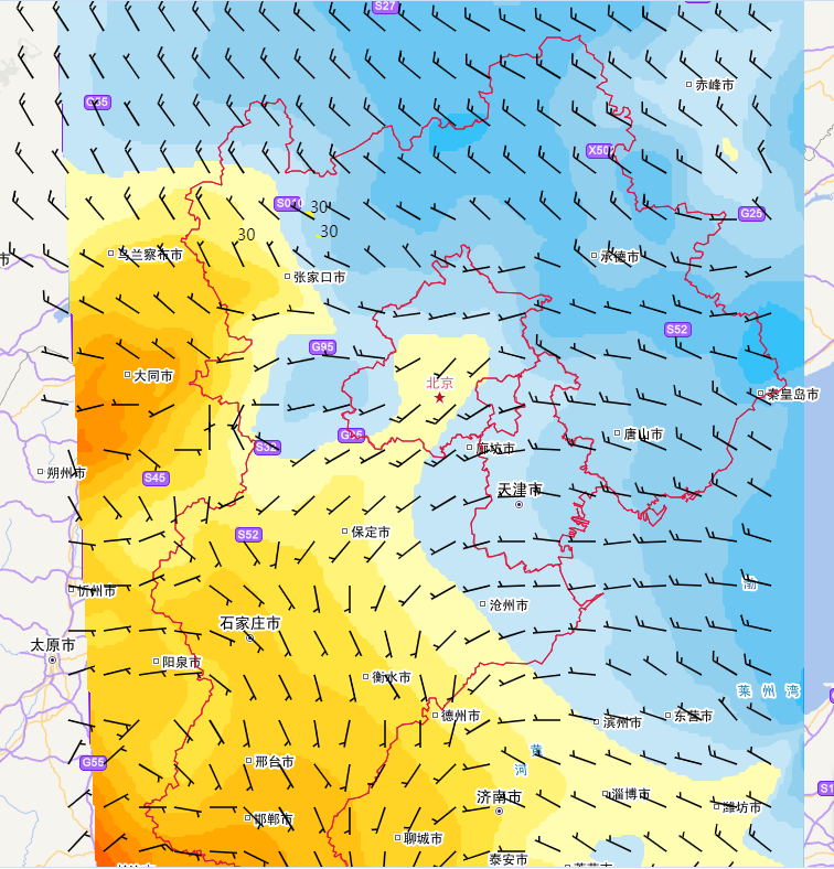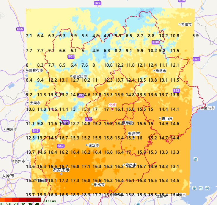 在“休闲天气”的微信产品中,应用RMAPS-ST的京津冀3km分辨率数值模式数据作为旅游休闲景点的预报和实况支撑数据,实现京津冀范围内1200个旅游休闲景区的天气查询,为京津冀用户休闲旅游提供精细化的气象服务。