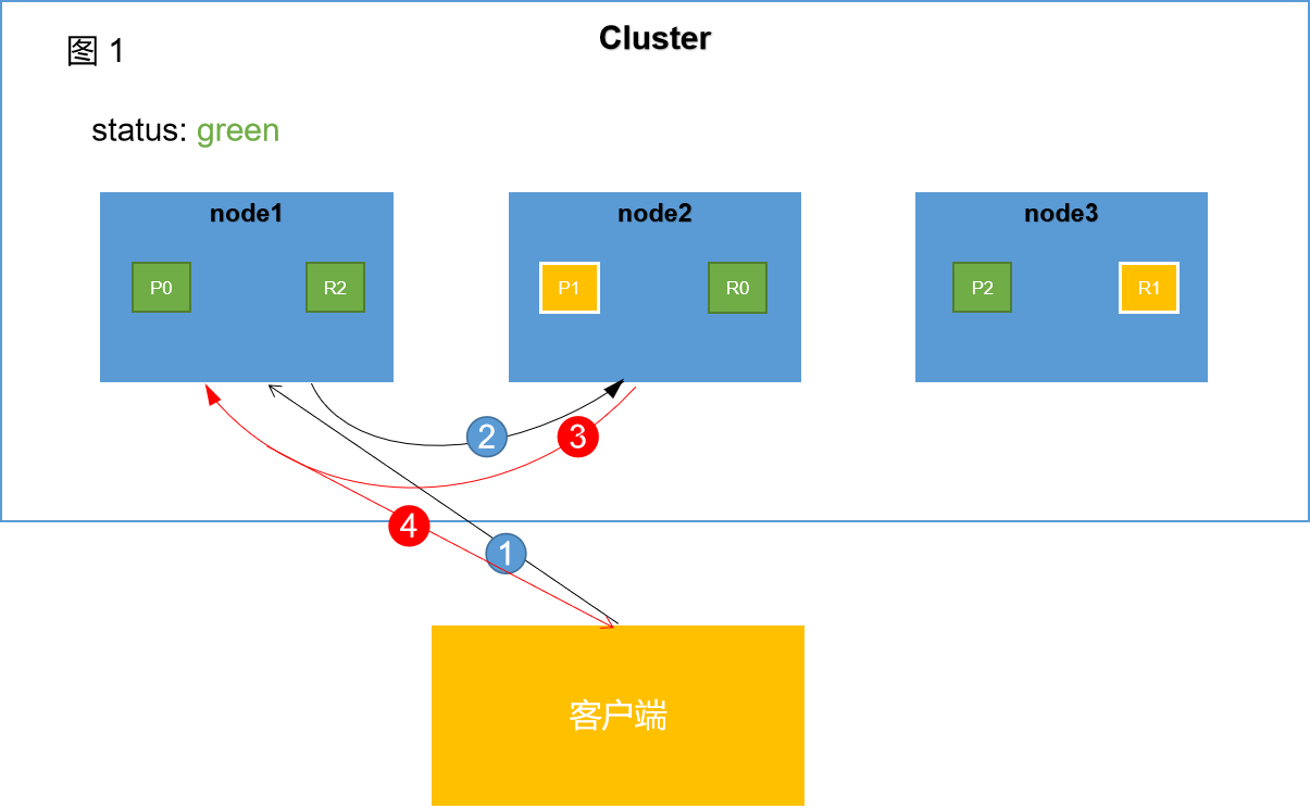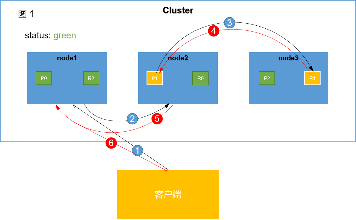 客户端向node1发送检索请求。node1将作为协调节点(coordinate node)进行相关工作。
