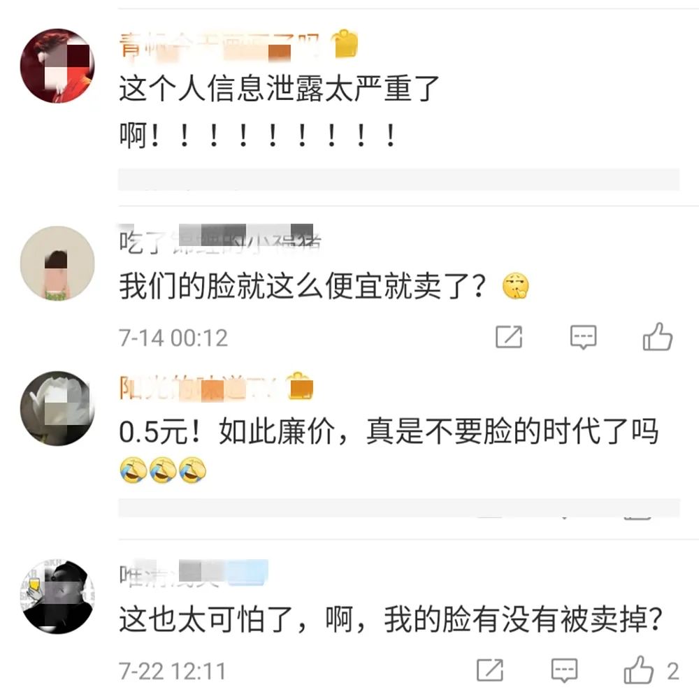 一些网友表示信息泄露太恐怖,另一些网友惊讶自己的脸居然只值5毛钱,还有网友无奈:大数据时代毫无隐私可言。