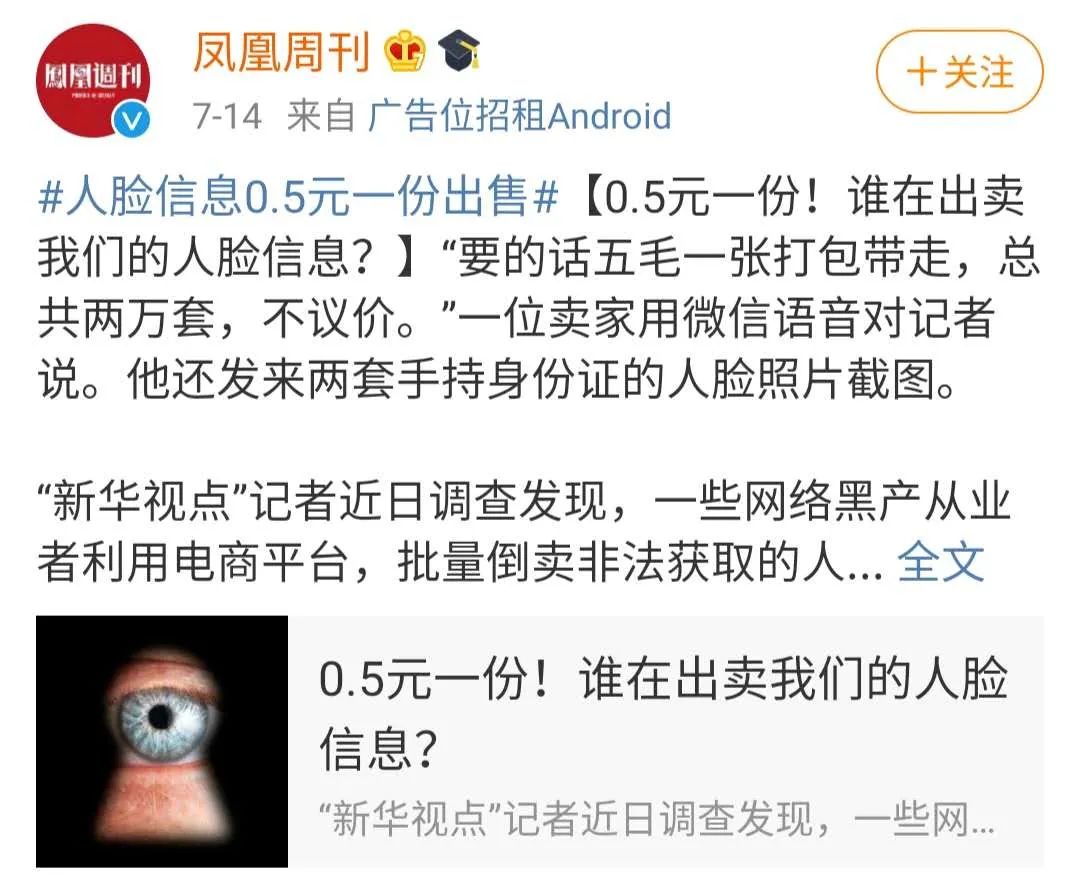 很难想象,有一天你的人脸信息会被人卖掉。而这带给你的困扰或许是一生的,除非你去“换脸”,而最近各大媒体就在纷纷报道关于人脸信息买卖的事件。