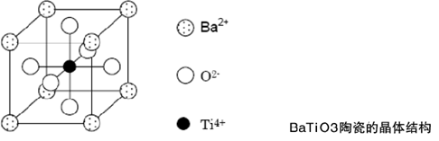 BaTiO3具有如下图所示的钙钛矿(perovskite)形的晶体结构,在居里温度以上时,为立方晶体(cubic),Ba2+离子位于顶点,O2-离子位于表面中心,Ti4+离子位于立方体中心的位置。