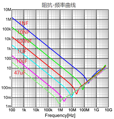 某村田10uF电容的阻抗频率曲线如下图: