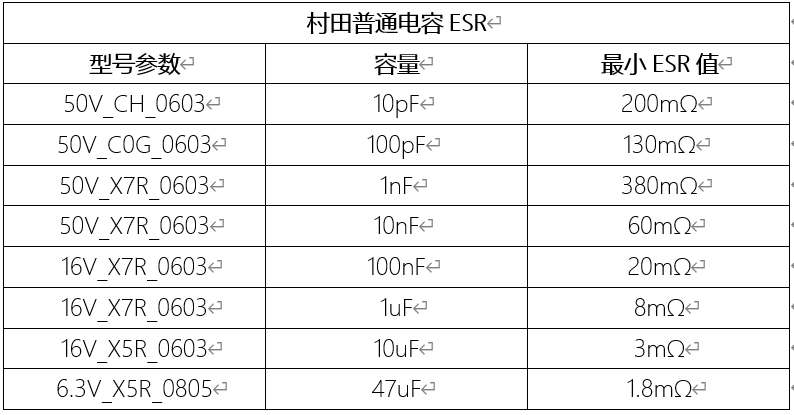 下图为村田普通电容的ESR表。