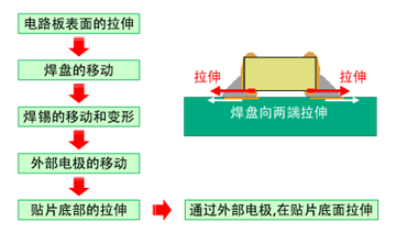 ③PCB弯曲:焊接到PCB板上后,PCB弯曲,拉动瓷片电容,过应力后损坏。