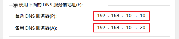 1、设置Windows 10客户端的首选DNS服务器和备用DNS服务器。