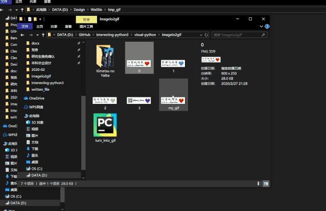 if __name__ == "__main__":# path initpath = os.path.join(__file__, "..")# read pngsfile_list = os.listdir(path)png_list = file_list.copy()for file in file_list:if file[-4:]!=".png":png_list.remove(file)png_list.sort(key=lambda x: int(x[:-4]))# now all the pngs are in the png_list# and sorted well from min to max# turn pngs into a gif fileframes = []for png in png_list:# get the png file's pathimage_path = os.path.join(path, png)# imageio.imread() to get RGB matrix# frames is a list which stores the pngs in orderframes.append(imageio.imread(image_path))# production pathgif_path = os.path.join(path, "my_gif.gif")imageio.mimsave(gif_path, frames, 'GIF', duration=DURATION)print("done")pass