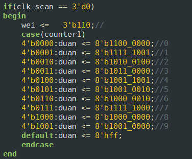 本设计采用共阳数码管,即位选低电平有效,并且将位选信号设置为低电平;