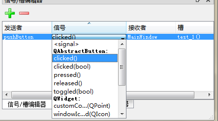 我们点击编译会出现槽/信号框,点击添加按钮,添加自定义的函数。