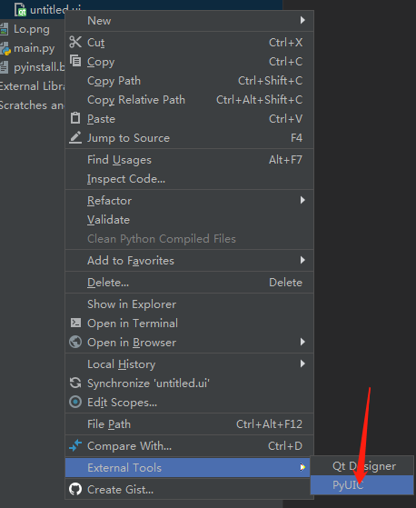 保存创建的UI,会在路径下生成一个.ui的文件,