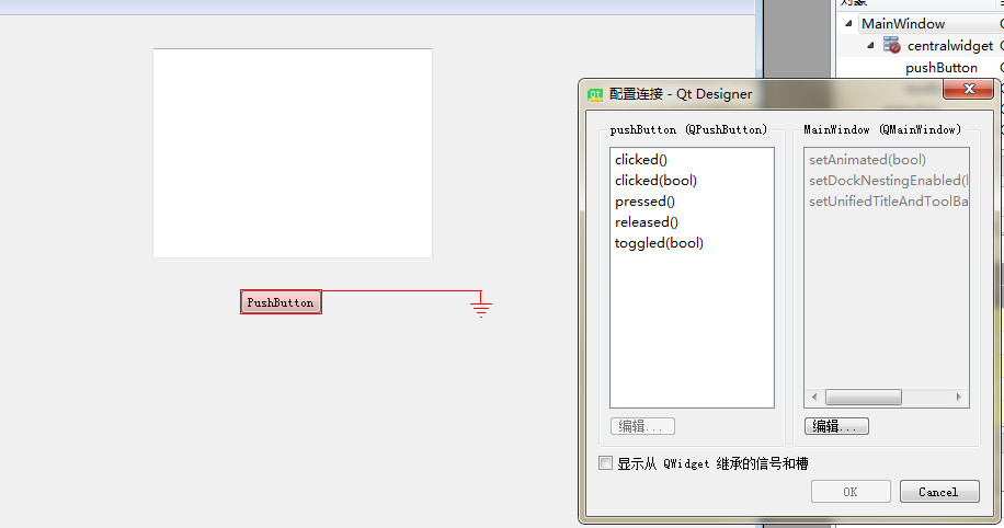 点击这个图标后,就进入了编辑信号/槽的状态,这个时候我们把鼠标放在放在组件上会有红色选中状态。
