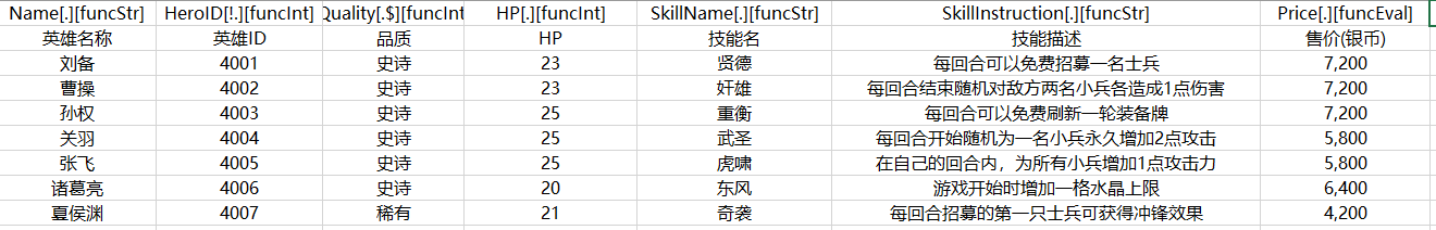 整理了游戏设定数据,保存为表格 开发了一个可以将excel表格转化为游戏可用数据的工具