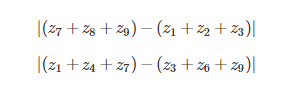 G(i)=|[f(i-1,j-1)+f(i-1,j)+f(i-1,j+1)]-[f(i+1,j-1)+f(i+1,j)+f(i+1,j+1)]|