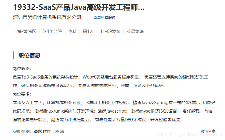 我们再来看一下腾讯Java高级开发工程师的招聘要求,年薪至少40w起步了吧!从下面的招聘信息可以看出,除去Java基础/集合/多线程这些,这些能力格外重要: