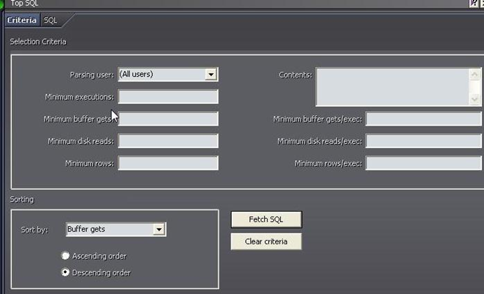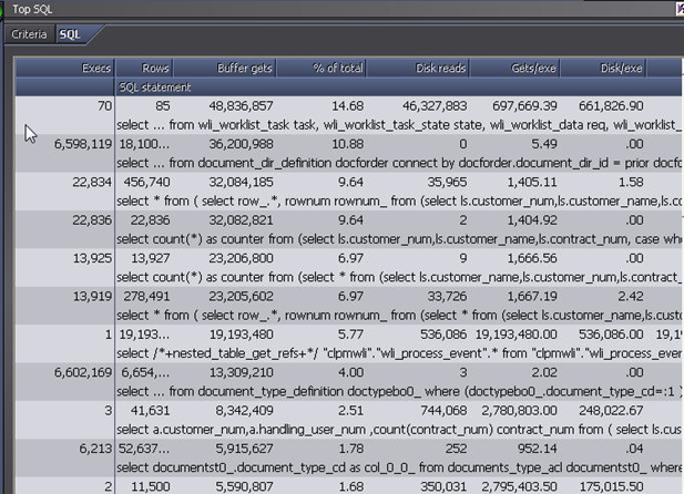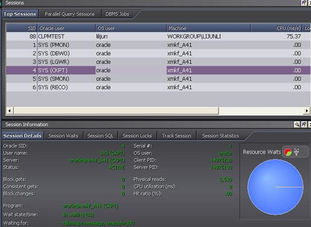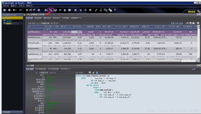 top sql: 点击Top Sql可以查看系统中所有占用资源较大的sql语句,选择相应行,可以查看SQL information详细信息;